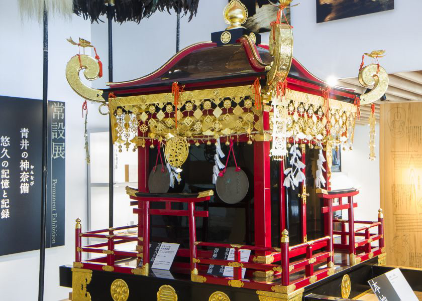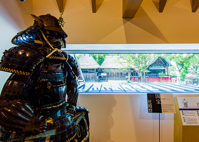西暦806年創建の青井阿蘇神社。2階の拝観室には、長きにわたり神社に受け継がれてきた貴重な神宝を展示しています。